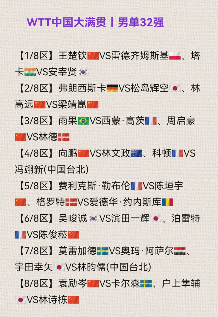 这是唯一一个没有国乒选手身影的小分区,不出意外的话,莫雷加德和林昀儒能各自搞定对手,提前约定“下轮见”