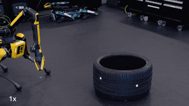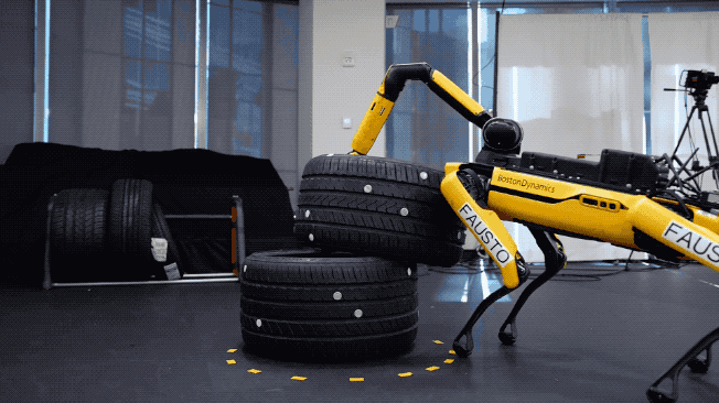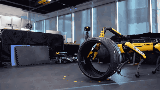 在波士顿动力人工智能研究所的最新方法——结合采样与学习的动态全身操作中,波士顿动力的机器狗Spot最快仅用3.7秒就能搬起轮胎。