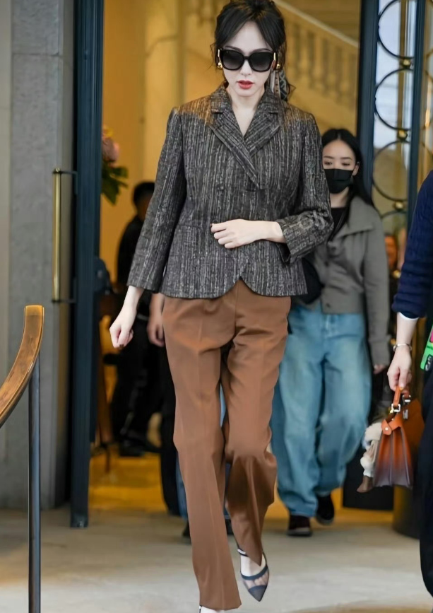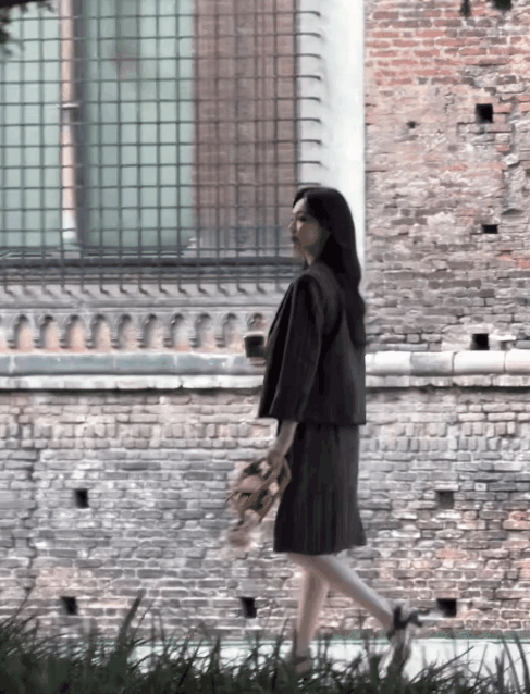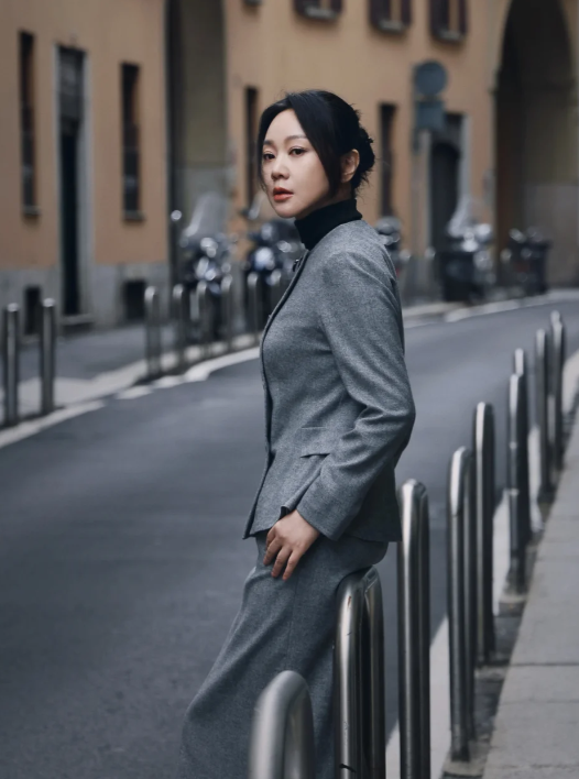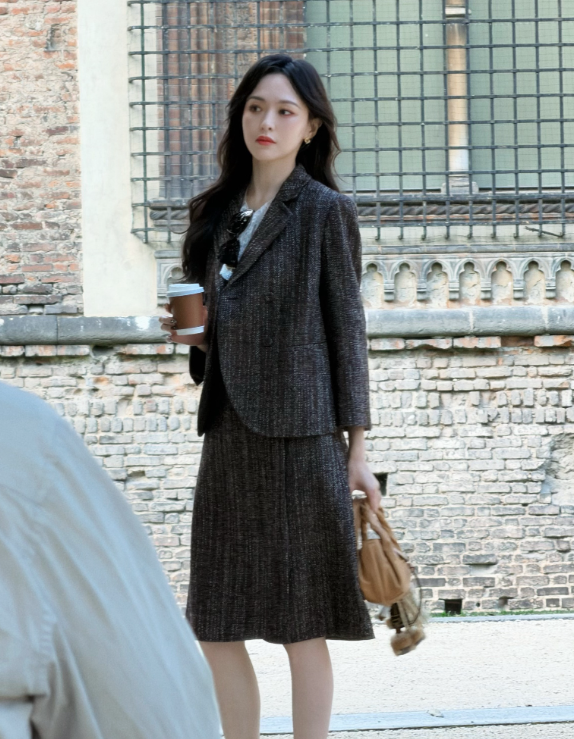 不过我更喜欢她另一套身穿灰色西服套装的造型,搭配简约的低盘发,职场女性的干练与优雅完美展现了出来,站在米兰的街头,随手一拍就是时尚大片。