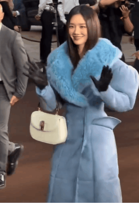 这身蓝色的棉风衣出现在早秋的街头就已经格外突兀,肩膀处的泡泡袖设计,更是让朴圭瑛像是刚吃完菠菜的大力水手。