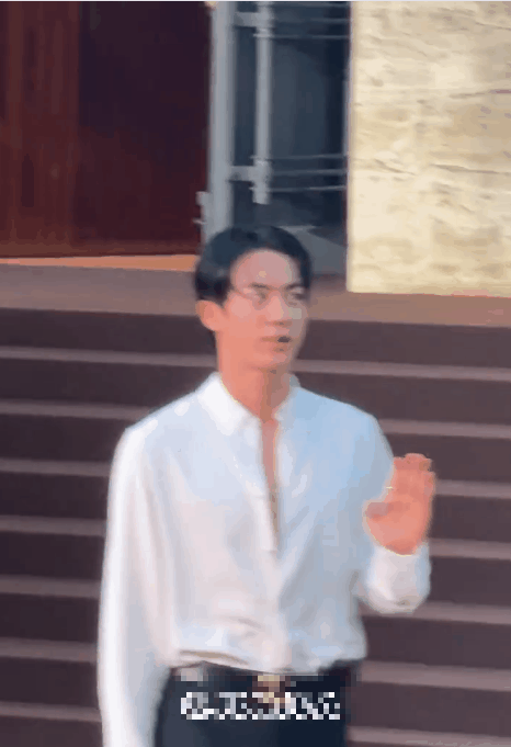 下半身的西装裤像是不合身似得往下滑,裤脚邋遢的堆在脚面上,给人一种“精神小伙”的既视感,身材被划为五五分,男明星滤镜碎一地。