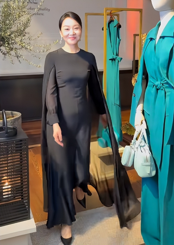 此次米兰时装周,闫妮选择了一条黑色修身长裙。