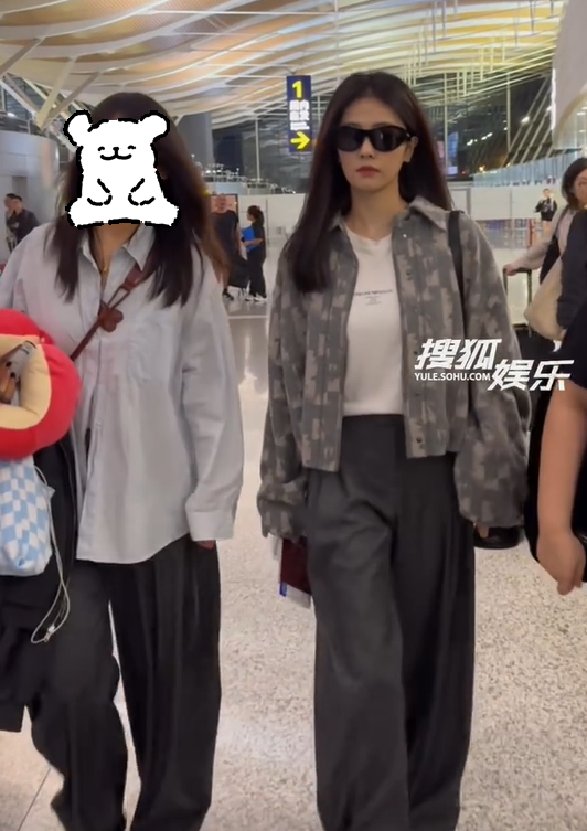 机场照中她造型休闲又慵懒,轻装上阵,相当清爽。