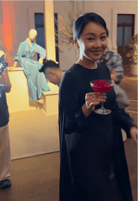 而闫妮不愧是微醺派的代表人物,在活动会场堪称酒不离手。